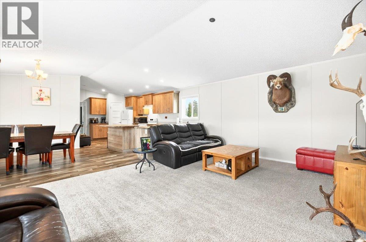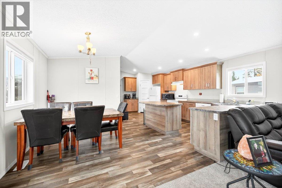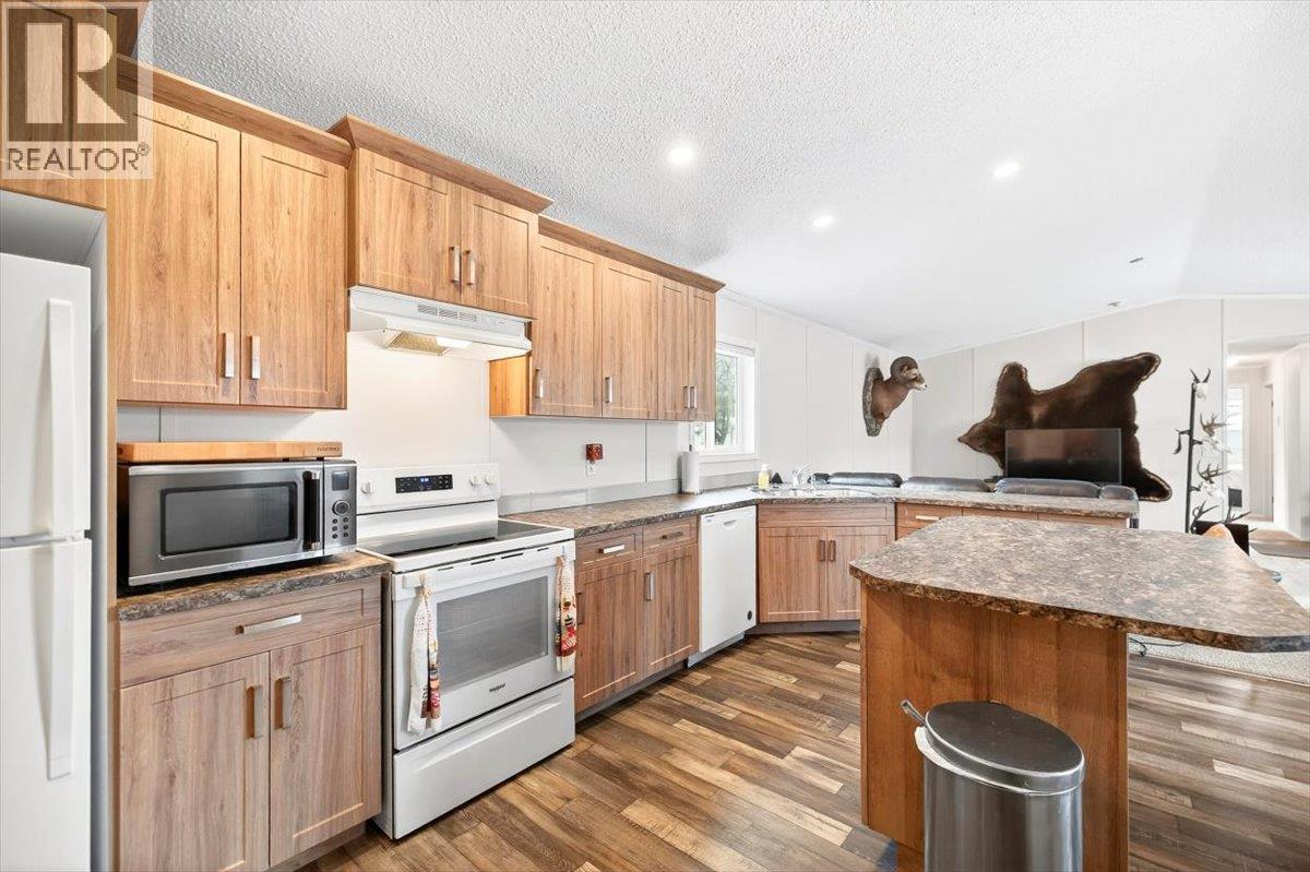 Thoughtfully designed and move-in ready, this 2024 modular home in Wilderness Heights offers modern comfort set against a beautiful mountain backdrop. The bright, open-concept layout creates an easy flow through the main living space, anchored by a well-appointed kitchen with a large island, ample storage, and room to gather. A spacious laundry and mudroom add everyday functionality. The primary suite is privately positioned at the back of the home and features a full ensuite with a deep soaker tub and a generous walk-in closet. Three additional bedrooms provide flexible space for family, guests, or a home office. Set on one of the largest lots in the park, the fully fenced yard is finished with black chain-link fencing and includes a storage shed—ideal for gear, tools, or seasonal storage. Step outside to take in the mountain views and enjoy direct access to Elkford’s trail network, perfect for those who value time outdoors. Located in a quiet, family-friendly community close to local amenities, this home offers a comfortable lifestyle where modern living meets mountain surroundings. (id:4069)