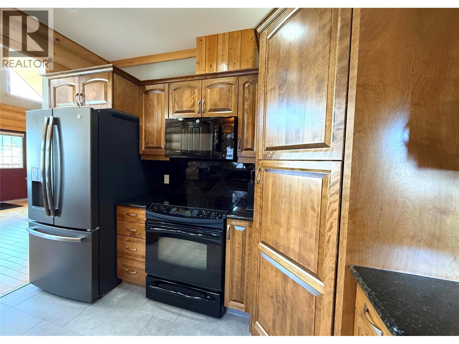 Welcome to this beautifully maintained, air-conditioned log home, nestled in the charming community of Marysville. Lovingly cared for since the day it was built, this home offers a perfect blend of rustic charm and modern comfort. The open-concept main floor boasts soaring vaulted ceilings, a gorgeous kitchen with granite countertops, a spacious pantry, main floor laundry, bedroom, a stylish 3-piece bathroom with custom tilework, plus direct access to two of the three inviting decks. Upstairs, the master suite offers a true retreat: a loft-style bedroom with a cozy sitting or dressing area, walk-in closet, a luxurious ensuite with a soaker tub and walk-in shower, plus private access to top deck complete with a hot tub — perfect for relaxing under the stars. The walkout lower level features in-floor heating, two additional bedrooms, a 4-piece bathroom, and a welcoming family room with a wood stove. Flex space functions as an office currently but rough plumbing makes it ideal for a future second kitchen if desired. Outside, you'll find an insulated single garage/shop, a single carport, abundant off-street parking, in-ground sprinklers, a water softener, and a fenced rear yard. The exterior was freshly stained in 2022, ensuring beauty and protection for years to come. Direct access to the Rails to Trails pathway out your back yard, minutes to multiple golf courses and endless recreation opportunities. This home is priced to sell so book your showing soon!! (id:4069)